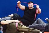 Урок довоенной подготовки в Спортивно-патриотическом клубе "Ярополк". Мужчина во время практического занятия по наложению жгутов.