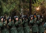 Торжественно-траурный митинг и захоронение останков летчика Алексея Юхименко, погибшего при выполнений боевого задания во время Великой Отечественной войны, на Северном кладбище в Выборгском районе. Участники на церемонии.