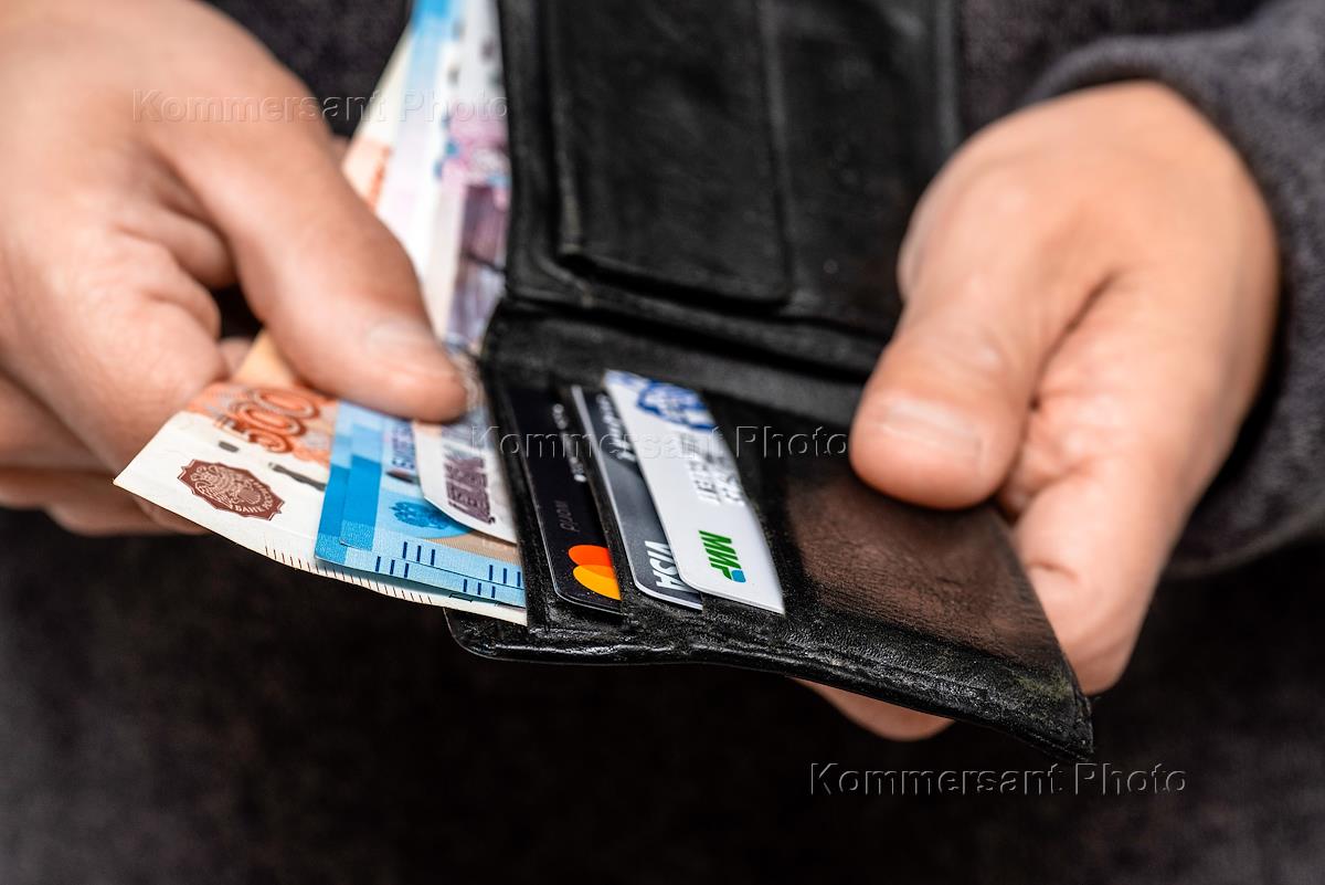Жанровая фотография. Деньги и пластиковые карты в портмоне.
