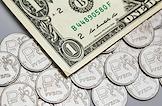 Жанровая фотография. Монеты достоинством 1 рубль и купюра в 1 доллар.