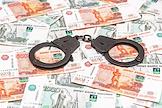 Жанровая фотография. Наручники лежат на купюрах достоинством 5000 и 1000 рублей.