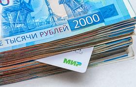 Жанровая фотография. Пачка денег и пластиковая карта платежной системы "Мир".
