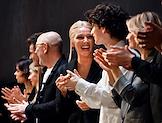 Премьера сериала "Монастырь" в кинотеатре "Художественный". Слева направо: режиссер, актер Филипп Янковский, актеры Анастасия Ивлеева, Наталья Кудряшова и Марк Эйдельштейн на премьере.