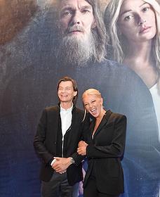 Премьера сериала "Монастырь" в кинотеатре "Художественный". Актеры Филипп Янковский (слева) Анастасия Ивлеева (справа) на премьере.