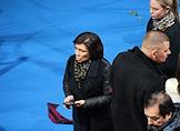 Церемония прощания с президентом Федерации фигурного катания на коньках России (ФФККР) Александром Горшковым на Малой спортивной арене в Лужниках. Вдова Александра Горшкова Ирина Горшкова (в центре) и его дочь модельер Юлия Пахомова-Горшкова (справа) на церемонии прощания.