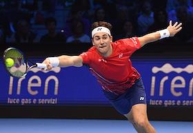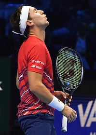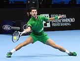 Итоговый турнир ATP (Nitto ATP Finals) в Турине. Финал. Сербский теннисист Новак Джокович во время матча с норвежским теннисистом Каспером Руудом.