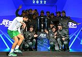 Итоговый турнир ATP (Nitto ATP Finals) в Турине. Финал. Церемония награждения победителя турнира. Норвежский теннисист Каспер Рууд на церемонии награждения после матча с сербским теннисистом Новаком Джоковичем. Новак Джокович стал победителем турнира.