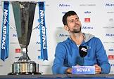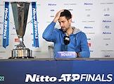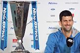 Итоговый турнир ATP (Nitto ATP Finals) в Турине. Финал. Сербский теннисист Новак Джокович, ставший победителем турнира, во время пресс-конференции после церемонии награждения.