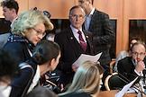 Расширенное заседание комитета Государственной думы (ГД) России по информационной политике, информационным технологиям и связи, посвященное принятому в первом чтении законопроекту о запрете пропаганды нетрадиционных сексуальных отношений и педофилии. Председатель комитета ГД России по информационной политике, информационным технологиям и связи Александр Хинштейн (слева) перед началом заседания.