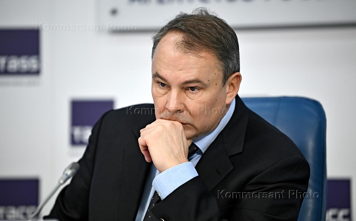 Пресс-конференция на тему: "Суррогатное материнство для иностранцев: торговля детьми на международном рынке", посвященная запрету суррогатного материнства для иностранцев в России, в информационном агентстве ТАСС. Заместитель председателя Государственной думы России Петр Толстой во время пресс-конференции.