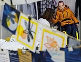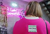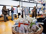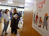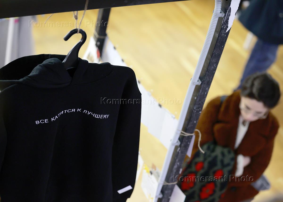 Благотворительный Garage Sale благотворительного фонда "ПРОдвижение" в арт-пространстве "Хлебозавод N 9". Участники во время распродажи.
