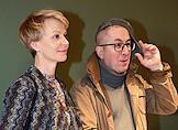 Премьера документального фильма "Пелевин" режиссера Родиона Чепеля в клубном пространстве Noodome. Актеры Татьяна Лютаева и Алексей Серебряков на премьере.