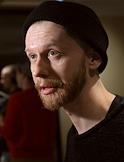 Премьера документального фильма "Пелевин" режиссера Родиона Чепеля в клубном пространстве Noodome. Актер Григорий Калинин на премьере.