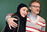 Премьера документального фильма "Пелевин" режиссера Родиона Чепеля в клубном пространстве Noodome. Режиссер Владимир Хотиненко с супругой Татьяной Яковлевой на премьере.