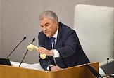 Пленарное заседание Государственной думы (ГД) России. Председатель ГД России Вячеслав Володин во время заседания.