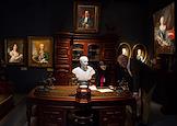 48-й Российский Антикварный Салон & Lifestyle "Искусство интерьера" в Гостином дворе. Жанровая фотография. Отражение интерьера Салона в одном из экспонатов, висящих на стене.