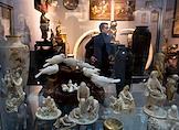 48-й Российский Антикварный Салон & Lifestyle "Искусство интерьера" в Гостином дворе. Жанровая фотография. Старинные статуэтки на витрине.