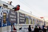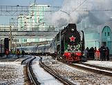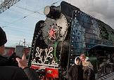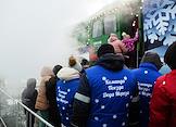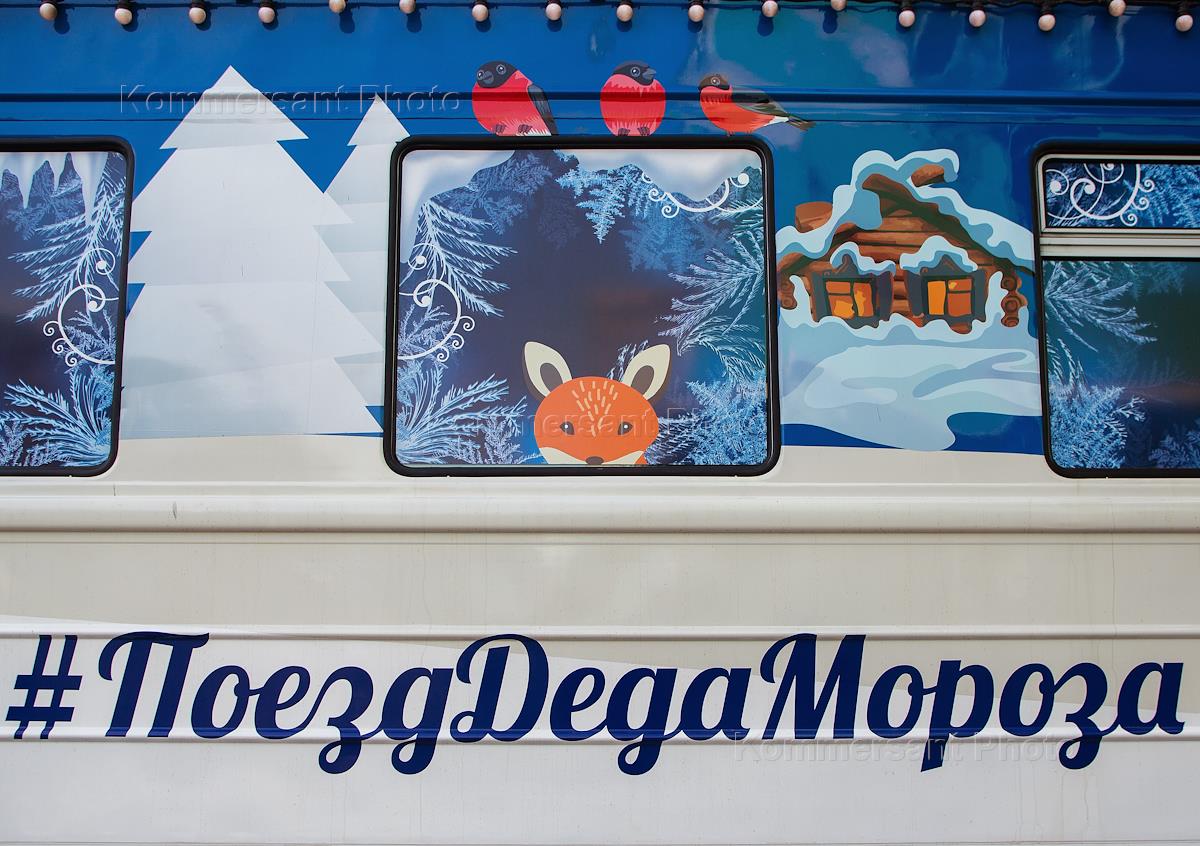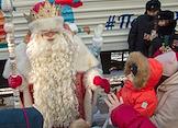 Церемония прибытия поезда Деда Мороза на железнодорожный вокзал Новосибирска. Жанровая фотография.