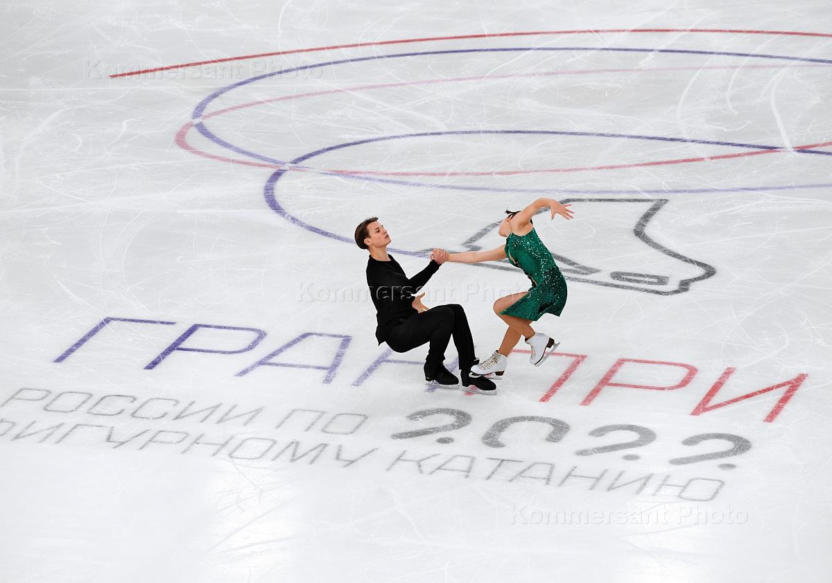 The sixth stage of the Grand Prix in figure skating at the Molot Universal Sports Palace named after V. N. Lebedev. Figure skaters Elizaveta Osokina and Artem Gritsaenko during the short program in pair skating.