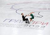 The sixth stage of the Grand Prix in figure skating at the Molot Universal Sports Palace named after V. N. Lebedev. Figure skaters Varvara Zhdanova and Timur Babaev-Smirnov performing a short program in ice dancing.
