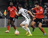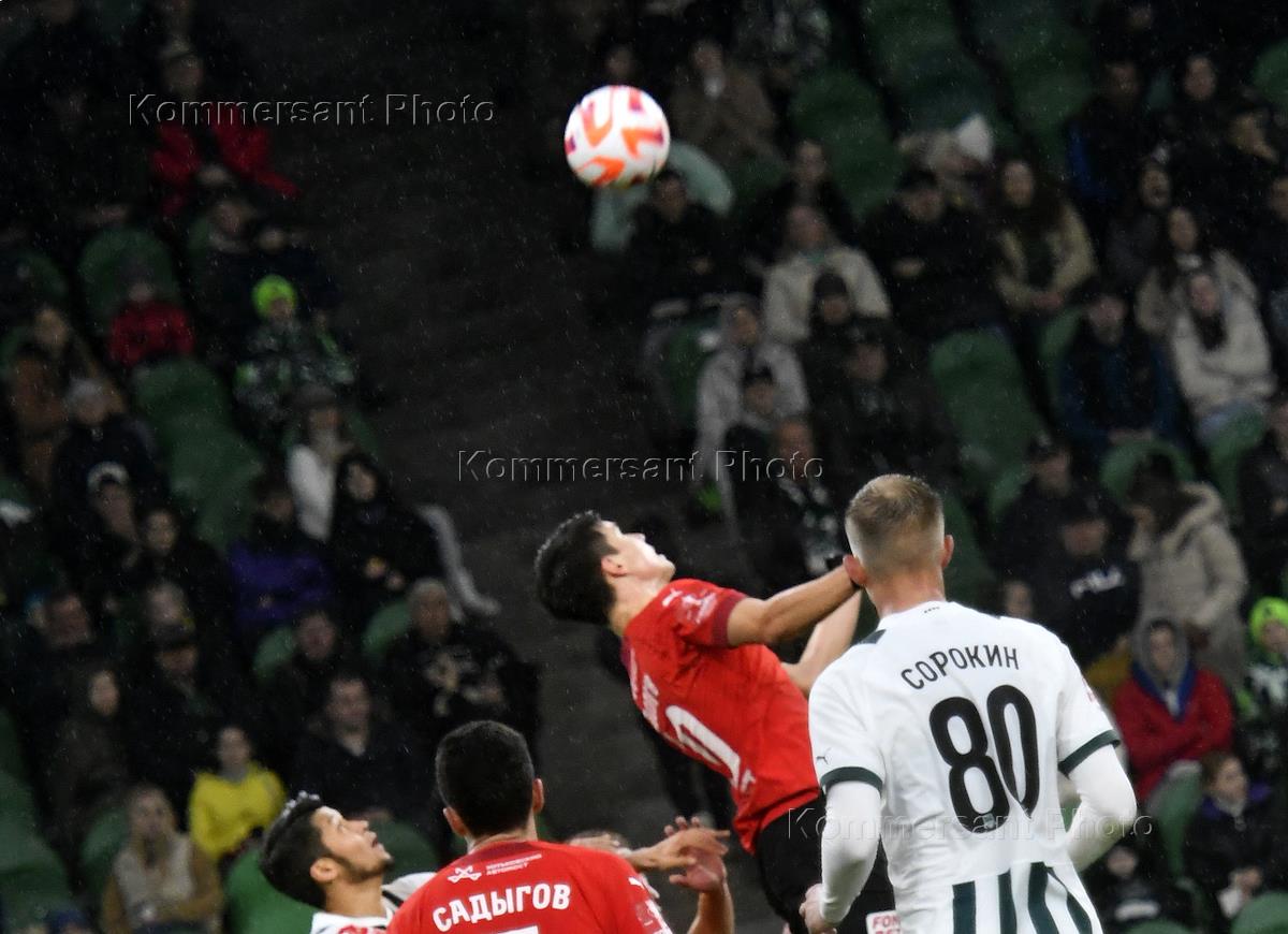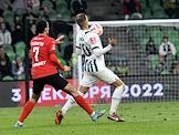 Фонбет - Кубок России по футболу 2022/23. Матч между командами "Краснодар" (Краснодар) - "Химки" (Химки) на стадионе ФК "Краснодар". Игрок команды "Краснодар" Данил Карпов (слева) во время матча.