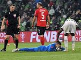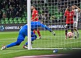 Фонбет - Кубок России по футболу 2022/23. Матч между командами "Краснодар" (Краснодар) - "Химки" (Химки) на стадионе ФК "Краснодар". Вратарь команды "Химки" Антон Митрюшкин (в центре) во время матча.