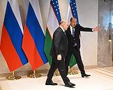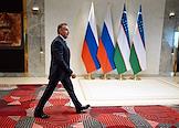 Рабочая поездка председателя правительства России Михаила Мишустина в Узбекистан. Заседание Совместной комиссии на уровне глав правительств России и Республики Узбекистан в широком составе. Заместитель председателя Правительства России Александр Новак (в центре) перед началом заседания.