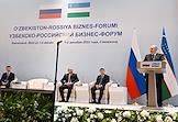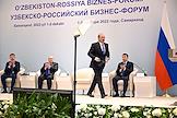 Рабочая поездка предсетателя правительства России Михаила Мишустина в Узбекистан. Узбекско-российский бизнес-форум в Экспо-центре. Председатель Правительства России Михаил Мишустин во время бизнес-форума.