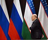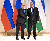 Рабочая поездка председателя правительства России Михаила Мишустина в Узбекистан. Председатель правительства России Михаил Мишустин (слева) и председатель правительства Узбекистана Абдулла Арипов (справа) во время встречи.