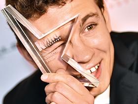 10-ая церемония вручения премии "Событие года" журнала "КиноРепортер" за достижения в области кино и телевидения в кинотеатре "Иллюзион". Сын актера Сергея Пускепалиса Глеб Пускепалис на церемонии.
