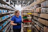Работа производства компании "Айкрафт Оптика". Жанровая фотография. Сотрудница компании на складе.