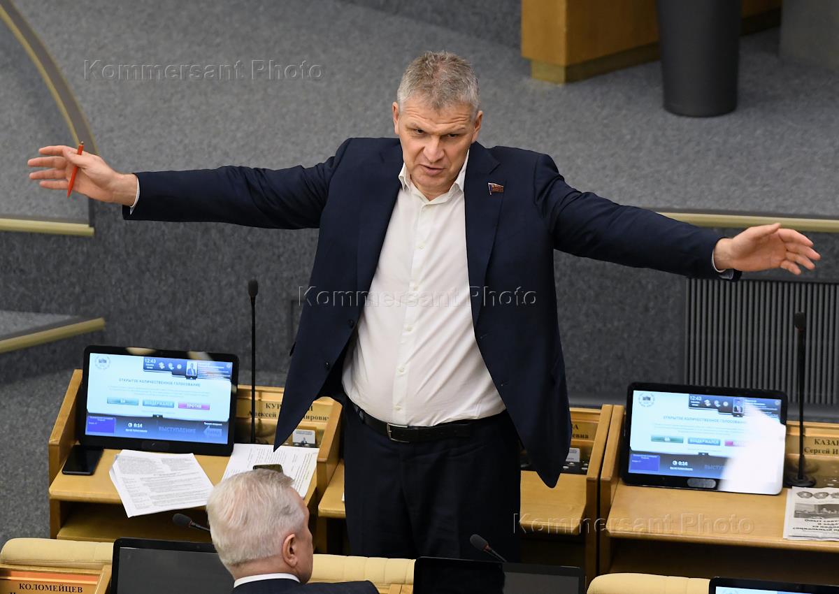 Пленарное заседание Государственной думы (ГД) России. Заместитель председателя комитета ГД России по охране здоровья Алексей Куринный во время заседания.
