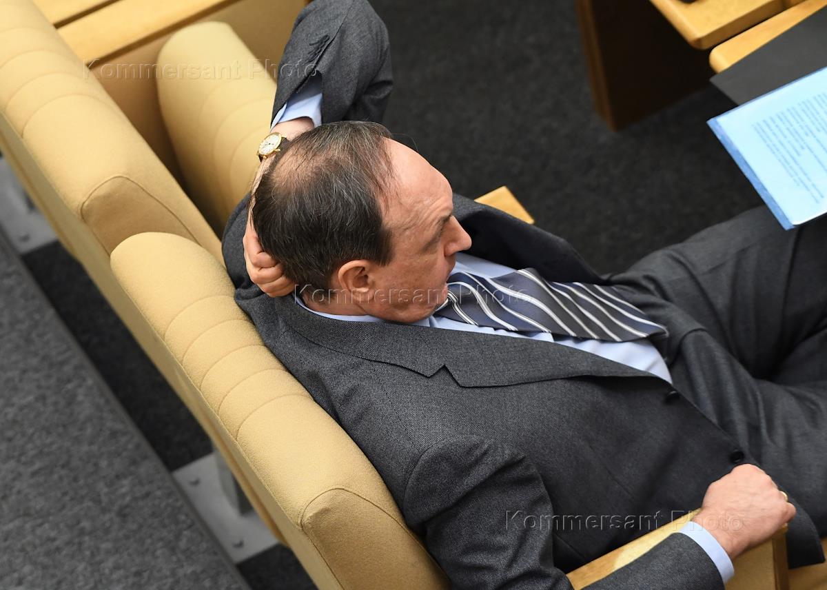 Пленарное заседание Государственной думы (ГД) России. Председатель комитета ГД России по науке и высшему образованию Сергей Кабышев перед началом заседания.