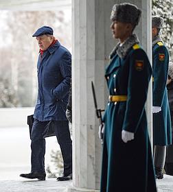 Рабочая поездка президента России Владимира Путина в Бишкек. Помощник президента России Юрий Ушаков (слева) перед началом заседания Высшего Евразийского экономического совета (ВЕЭС) на саммите стран - участниц Евразийского экономического союза (ЕАЭС).