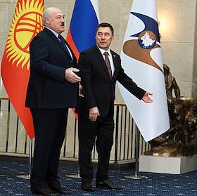 Рабочая поездка президента России Владимира Путина в Бишкек. Президент Белоруссии Александр Лукашенко (слева) и президент Киргизии Садыр Жапаров (справа) перед началом заседания Высшего Евразийского экономического совета (ВЕЭС) на саммите стран - участниц Евразийского экономического союза (ЕАЭС).