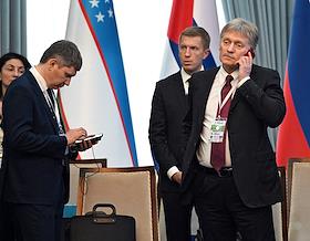 Рабочая поездка президента России Владимира Путина в Бишкек. Заместитель руководителя администрации президента России, пресс-секретарь президента России Дмитрий Песков перед началом заседания Высшего Евразийского экономического совета (ВЕЭС) на саммите стран - участниц Евразийского экономического союза (ЕАЭС).