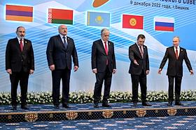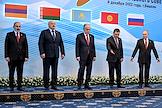 Рабочая поездка президента России Владимира Путина в Бишкек. Церемония фотографирования глав делегаций государств-участников Высшего Евразийского экономического совета (ВЕЭС) на саммите стран - участниц Евразийского экономического союза (ЕАЭС) в Бишкеке. Слева направо: премьер-министр Армении Никол Пашинян, президент Белоруссии Александр Лукашенко, президент Казахстана Касым-Жомарт Токаев, президент Киргизии Садыр Жапаров и президент России Владимир Путин после окончания церемонии.