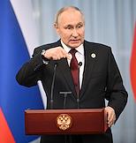 Рабочая поездка президента России Владимира Путина в Бишкек. Заседание Высшего Евразийского экономического совета (ВЕЭС) на саммите стран - участниц Евразийского экономического союза (ЕАЭС). Президент России Владимир Путин во время пресс-конференции после заседания.