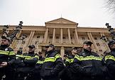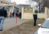 Рассмотрение ходатайства об освобождении или отсрочке наказания бывшему президенту Грузии Михаилу Саакашвили в Тбилисском городском суде. Ситуация у суда. Сотрудники полиции у здания суда.