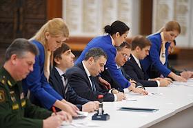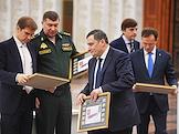 Первый форум "Школа героев", организованный партией "Единая Россия" совместно с Министерством просвещения России в Музее Победы на Поклонной горе. Слева направо: начальник управления президента России по общественным проектам Сергей Новиков, заместитель директора Федеральной службы войск национальной гвардии России - главнокомандующего войсками национальной гвардии России генерал-полковник Игорь Ильяш и председатель комитета Государственной думы России по информационной политике, информационным технологиям и связи Александр Хинштейн на церемонии гашения почтовой марки, посвященной героям России, участникам специальной военной операции, в рамках первого форума "Школа героев".