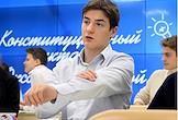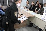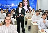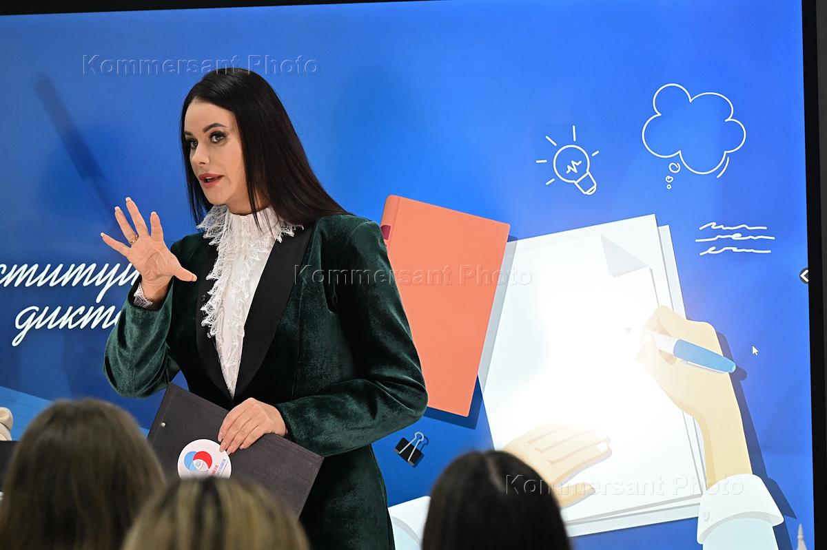 Первый очный диктант на знание Конституции России среди школьников, организованный Российским движением школьников, в Государственном бюджетном общеобразовательном учреждении города Москвы "Школа № 1231 имени В.Д. Поленова". Президент благотворительного фонда "Спешите делать добро", телеведущая Оксана Федорова во время диктанта.