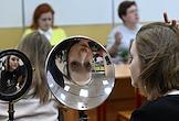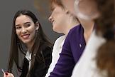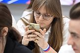 Первый очный диктант на знание Конституции России среди школьников, организованный Российским движением школьников, в Государственном бюджетном общеобразовательном учреждении города Москвы "Школа № 1231 имени В.Д. Поленова". Учащаяся во время диктанта.