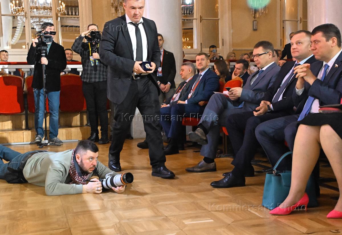 Всероссийский слет Либерально-демократическая партия России (ЛДПР), приуроченный ко Дню рождения партии в Колонном Зале Дома Союзов. Жанровая фотография. Фотограф во время работы на слете.