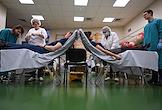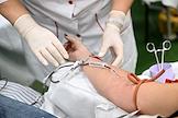 Донорская акция в рамках V общероссийской недели IT-донора в здании главного вычислительного центра – филиала ОАО "РЖД". Акция проводится совместно с ФГКУ "1586-й военный клинический госпиталь МО РФ" города Подольска. Жанровая фотография. Системы с кровью.