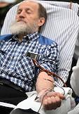 Донорская акция в рамках V общероссийской недели IT-донора в здании главного вычислительного центра – филиала ОАО "РЖД". Акция проводится совместно с ФГКУ "1586-й военный клинический госпиталь МО РФ" города Подольска. Участник акции во время сдачи крови.