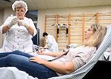 Донорская акция в рамках V общероссийской недели IT-донора в здании главного вычислительного центра – филиала ОАО "РЖД". Акция проводится совместно с ФГКУ "1586-й военный клинический госпиталь МО РФ" города Подольска. Медицинские работники во время забора крови у участников акции.