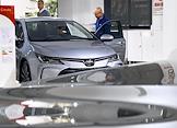 Жанровая фотография. Посетители в автосалоне по продаже автомобилей Toyota.