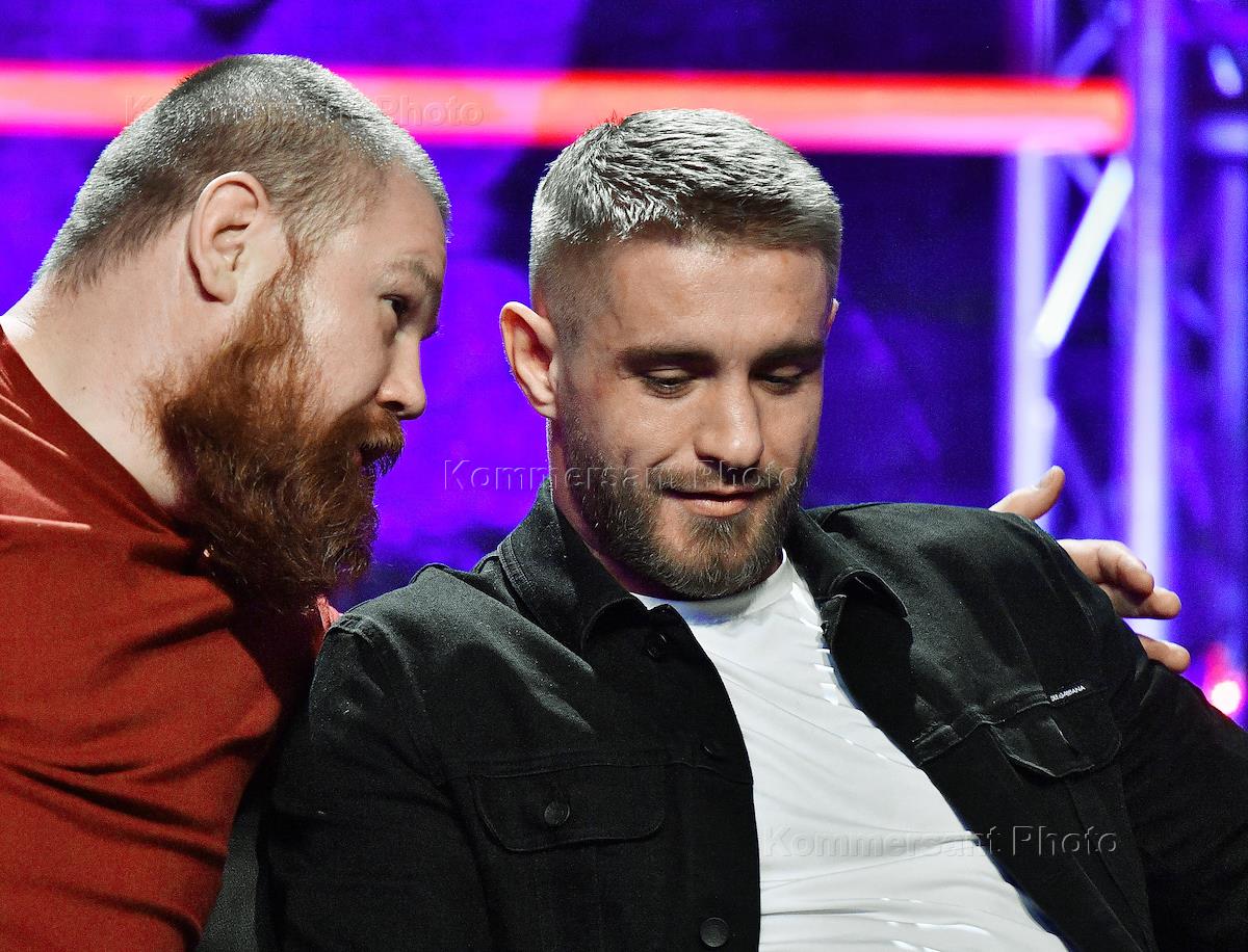 Пресс-конференция участников турнира "Бойцовский клуб РЕН ТВ. Суперсерия" в пресс-центре МИЦ "Известия". Российские бойцы смешанных единоборств Вячеслав Дацик (слева) и Святослав Коваленко (справа) во время пресс-конференции.