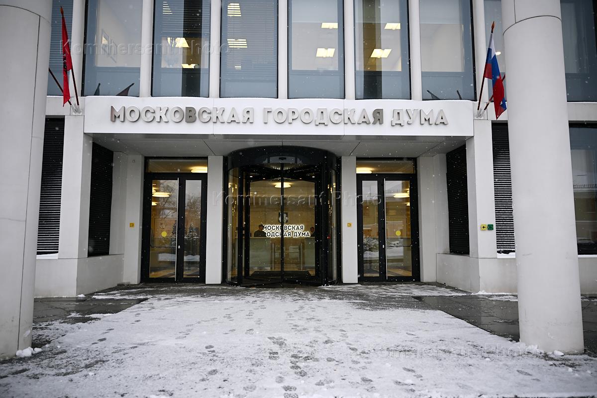 Заседание Моcковской городской думы (Мосгордумы). Председатель Мосгордумы Алексей Шапошников (в центре) во время заседания.