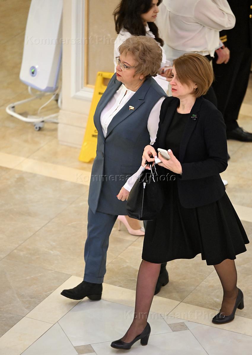 Пленарное заседание Совета Федерации (СФ) России. Представитель в СФ России от исполнительного органа государственной власти Липецкой области Оксана Хлякина (слева) перед началом заседания.